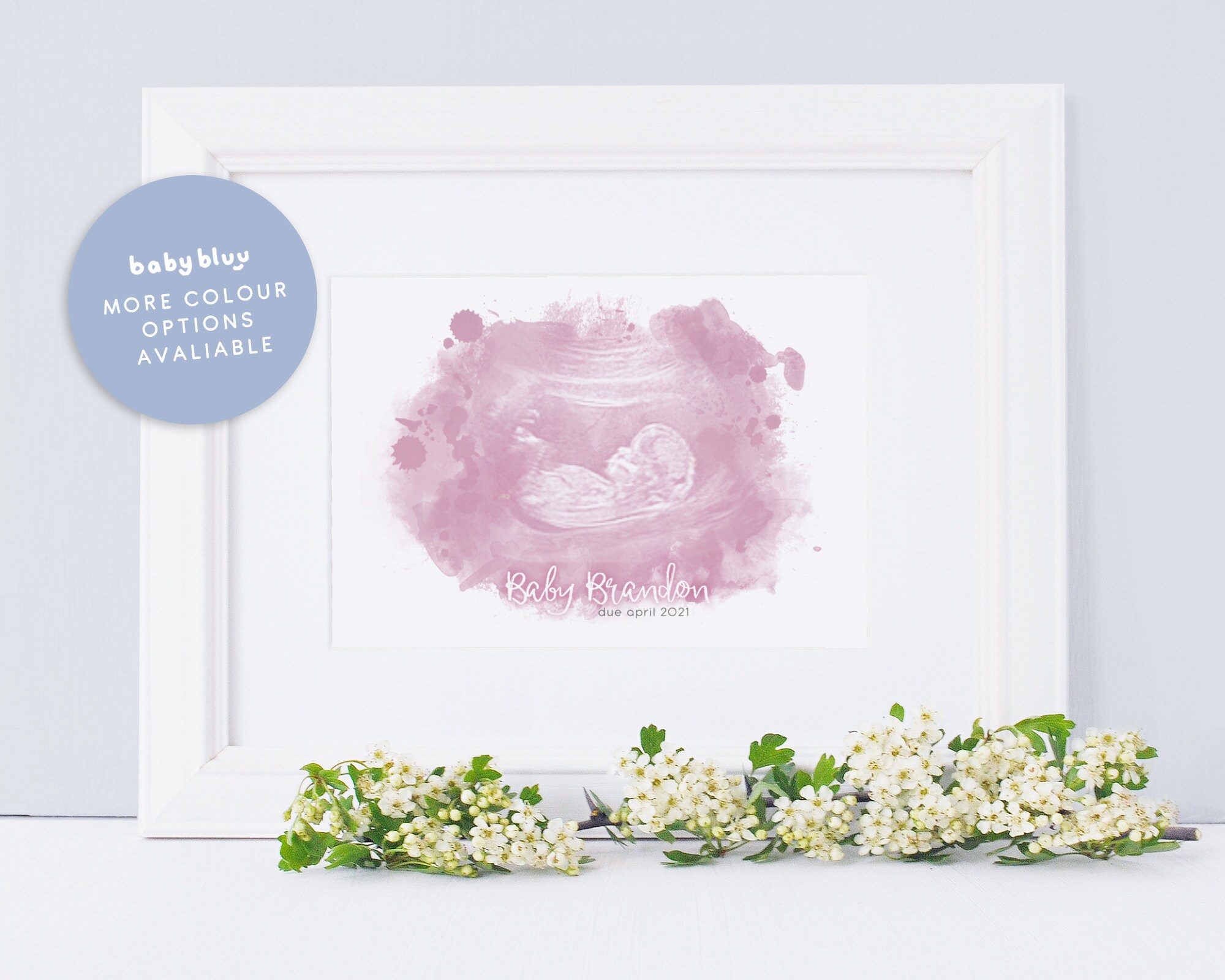 Amazon Com Personalized Sonogram Watercolor Art Custom Ultrasound Picture For Pregnancy Announcement Or Baby Nursery Wall Decor Unframed With Frame 8x10 Posters Prints