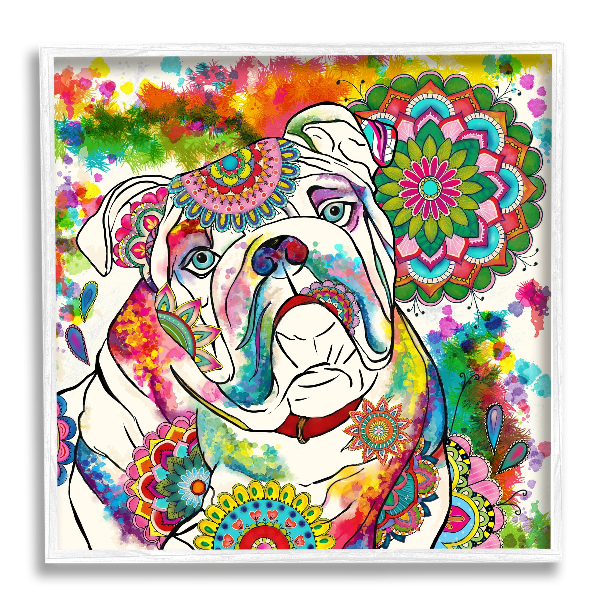 Stupell Industries Pet Bulldog Portrait Vibrant Medallion Boho Pattern 12 X 12 Design By Sangita Bachelet Walmart Com